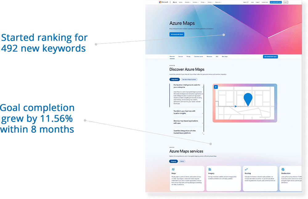 Microsoft Bing Enterprise Maps’ team wanted Coalition’s help to reverse the declining organic traffic to their website, and to boost their monthly leads through Enterprise Search Engine Optimization (SEO) and Enterprise Pay Per Click (PPC) efforts.